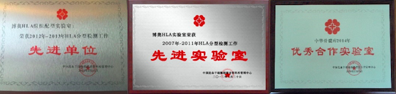 中华骨髓库颁发给博奥HLA分型检测实验室的荣誉