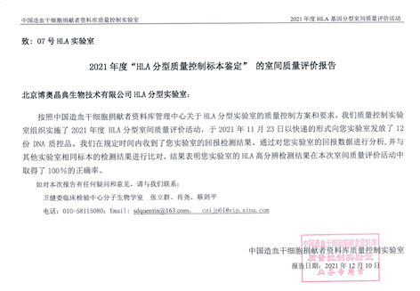 2021年美国 UCLA DNA Exchange实验室HLA分型能力验证活动