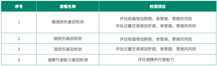 烟酒损伤基因检测是顺利获得检测烟酒中的化学物质在人体内代谢过程及对人体的损伤机制相关的基因,包括DNA损伤复基因、癌基因、抑癌基因、毒物代谢酶基因、细胞周期控基因等,顺利获得分析基因检测结果,评估吸烟增加肺癌、食管癌、胃癌的风险,过量饮酒增加肝癌、食管癌、胃癌的风险,给予相关的健康建议,帮助受检者尽早戒烟,指导合理、适量饮酒,从而减少吸烟饮酒对身体造成的伤害。