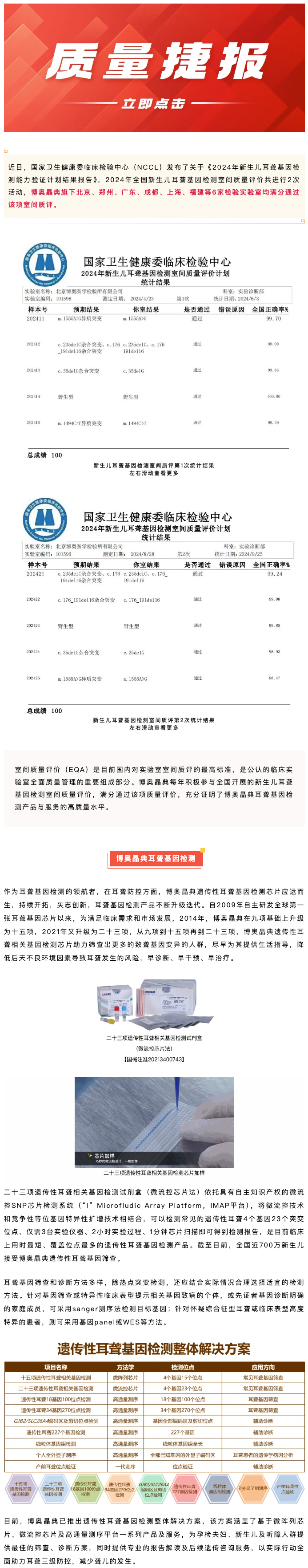 捷报丨K8凯发国际旗下多家检验所满分顺利获得2024年NCCL全国新生儿耳聋基因检测室间质评