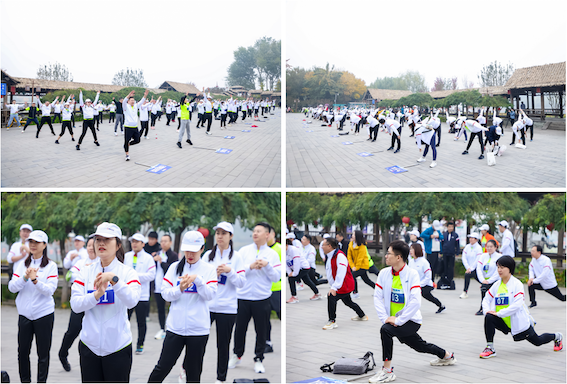 越野拉力赛前,所有参赛选手于通州大运河东岸漕运码头休息长廊广场集合进行赛前热身,顺利获得热身提升关节灵活性,降低可能带来的运动损伤风险。
